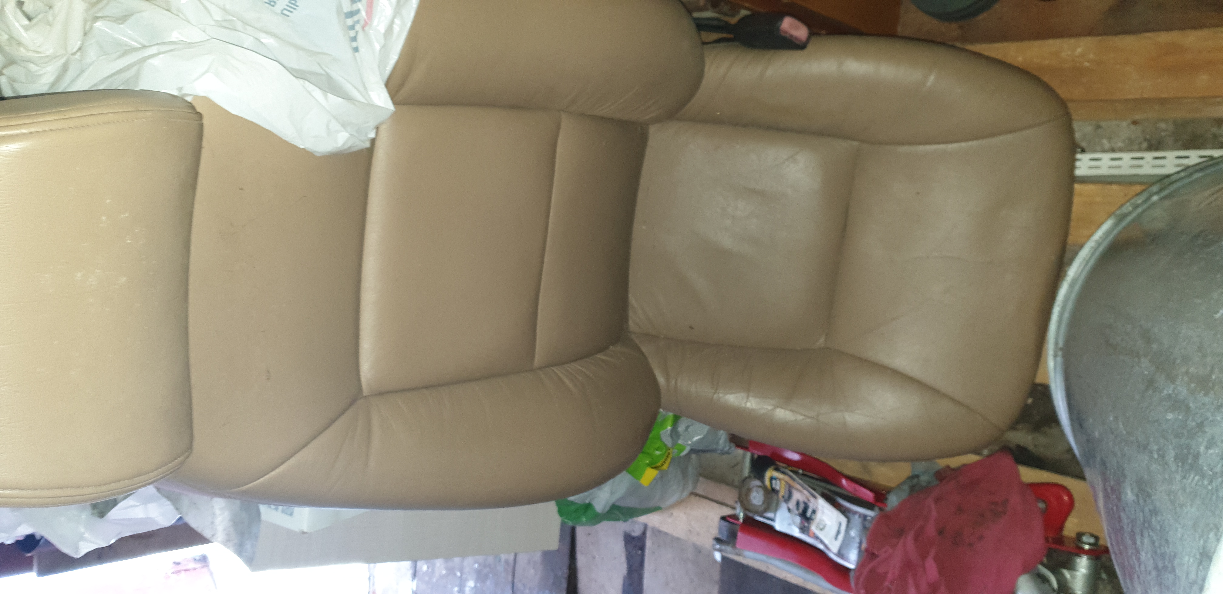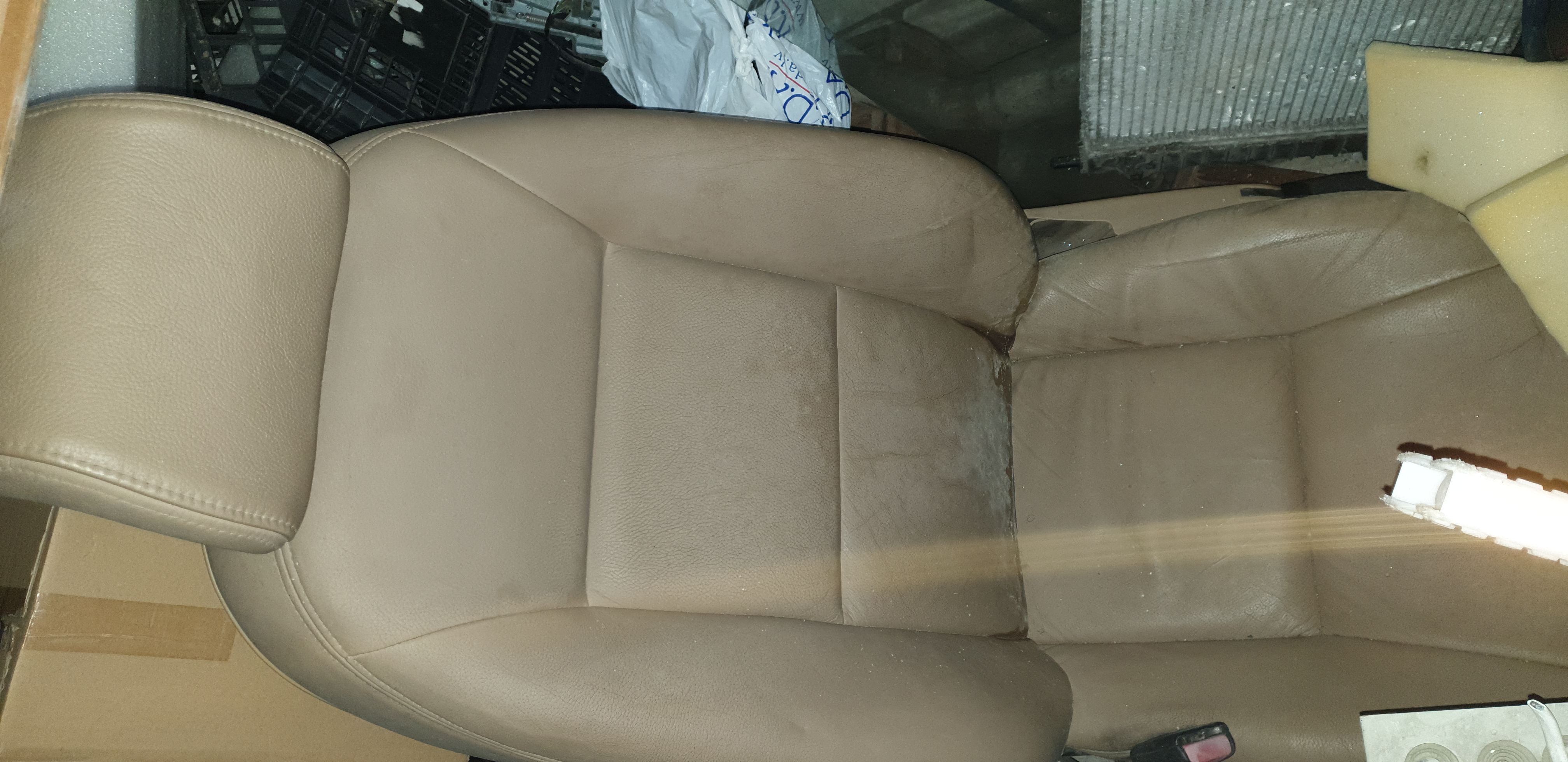 Atdodu šādus bēšas krāsas SAAB 9-5 šofera krēslus. Tas kas ir tīri labā stāvoklī, tas ir elektriski regulējams. Otrs ir ar mehānisku regulāciju.